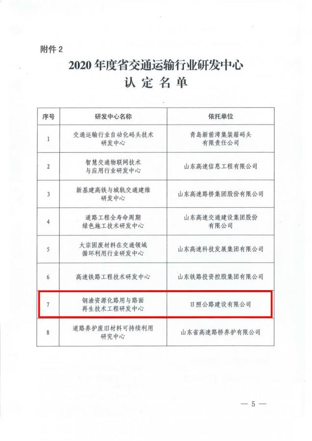 11月5日,省交通運(yùn)輸廳公布2020年度省交通運(yùn)輸行業(yè)重點(diǎn)實(shí)驗(yàn)室和研發(fā)中心,建設(shè)公司“鋼渣資源化路用與路面再生技術(shù)工程研發(fā)中心”順利通過考核認(rèn)定。