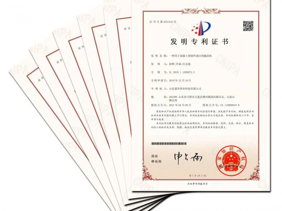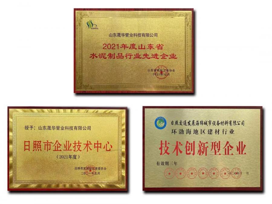 晟華管業(yè)公司成立以來,緊跟國家政策和市場導(dǎo)向,以綠色環(huán)保、智能智造為路徑,堅持科研創(chuàng)新融入生產(chǎn)經(jīng)營,創(chuàng)新研發(fā)混凝土管管壁處理器、抗震方艙公寓,創(chuàng)新應(yīng)用ERP項目管理系統(tǒng)、車間8S精細化管理、安全互動體驗區(qū)等,全面提高了產(chǎn)線自動化水平,實現(xiàn)了全流程線上閉環(huán)運行,經(jīng)營效能不斷提升,增強了公司核心競爭力。目前晟華管業(yè)公司獲得國家發(fā)明專利2項,實用新型發(fā)明12項,計算機軟件著作權(quán)12件,先后榮獲“環(huán)渤海地區(qū)建材行業(yè)技術(shù)創(chuàng)新型企業(yè)”“日照市企業(yè)技術(shù)中心”“水泥制品行業(yè)先進企業(yè)”等榮譽稱號,技術(shù)創(chuàng)新水平實現(xiàn)了“質(zhì)“的躍升。