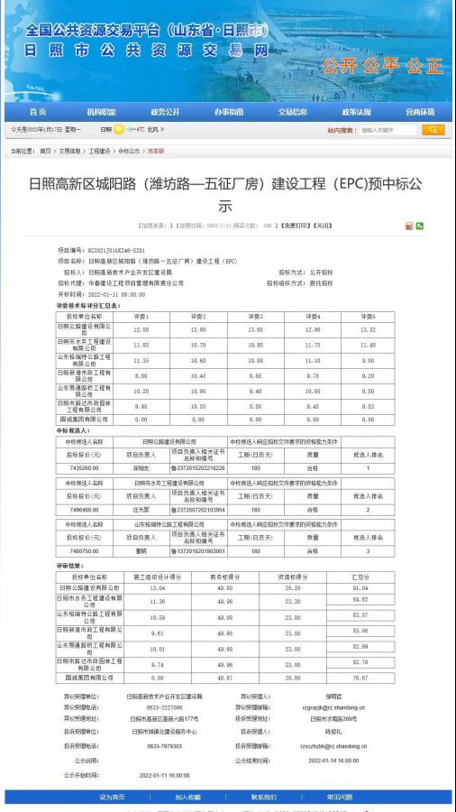 日照高新區(qū)城陽路(濰坊路—五征廠房)建設(shè)工程(EPC)項(xiàng)目:為城市支路,是新建道路,工程內(nèi)容包括道路、排水、交通、照明、擋土墻等。