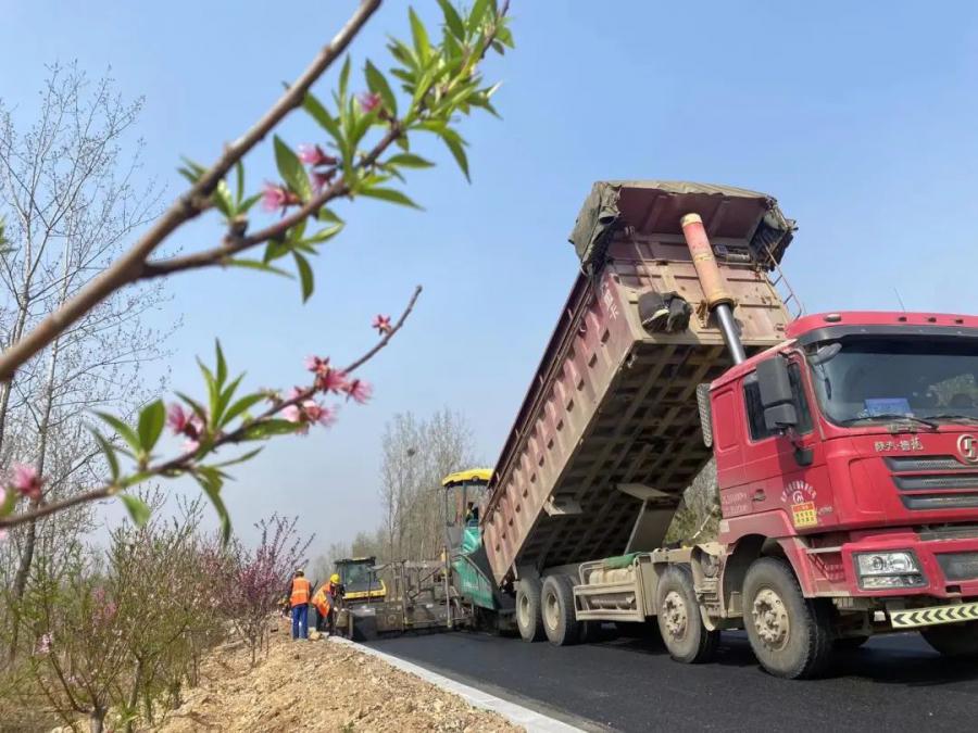 春色撩人,鳥語花香,正是五蓮最美的季節(jié),集團建設(shè)公司承建的叩魏路改建工程進入瀝青面層施工的黃金時期,熱火朝天的施工場面與路邊花團錦簇相映成趣。