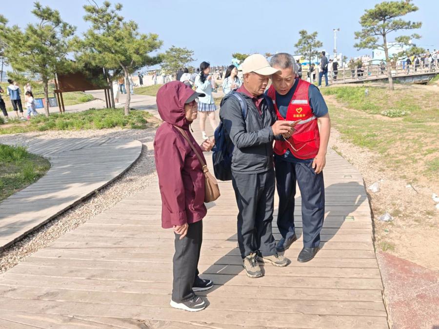 在陽光海岸景區(qū),鮮紅的志愿者馬甲和蔚藍天空交相輝映。志愿者們面向廣大游客熱情提供問路、咨詢等便民服務,有禮進行文明引導,同時協(xié)助開展環(huán)境清潔與秩序維護等活動。