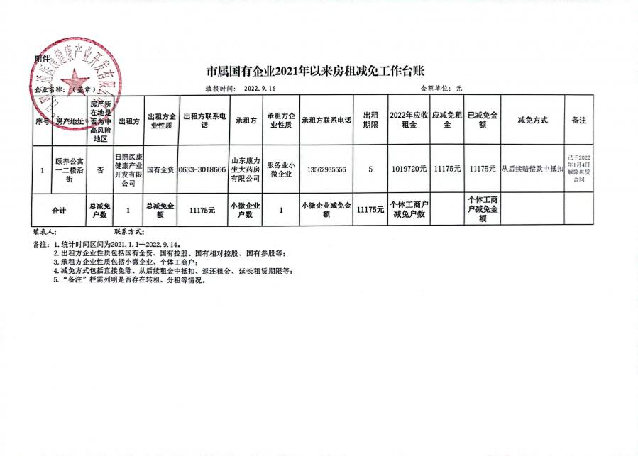 重大事項——日照交通醫(yī)康健康產業(yè)開發(fā)有限公司房租減免情況