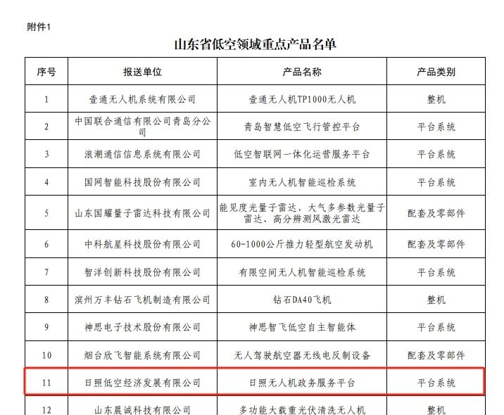 其中,集團低空經(jīng)濟公司報送的“日照無人機政務(wù)服務(wù)平臺”名列低空領(lǐng)域重點產(chǎn)品名單。