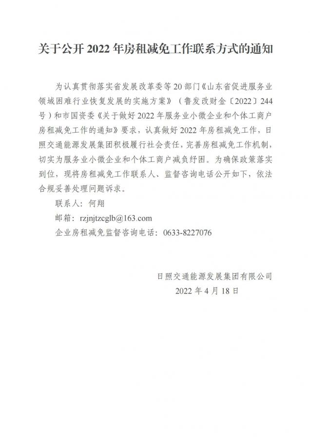 關(guān)于公開 2022 年房租減免工作聯(lián)系方式的通知